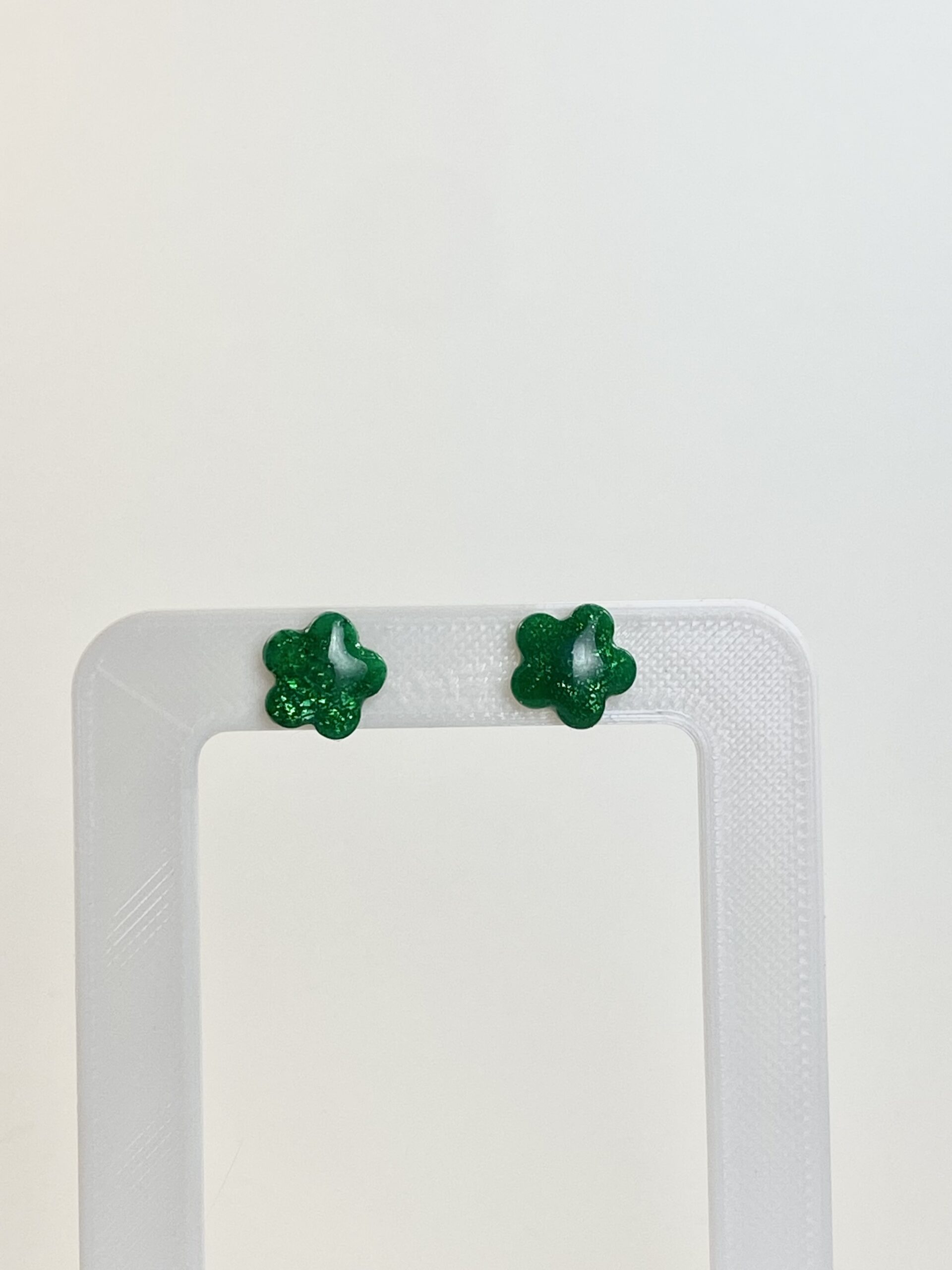Craquez pour ces petites puces fleurs vertes pailletés montées sur des apprêts en acier inoxydable.